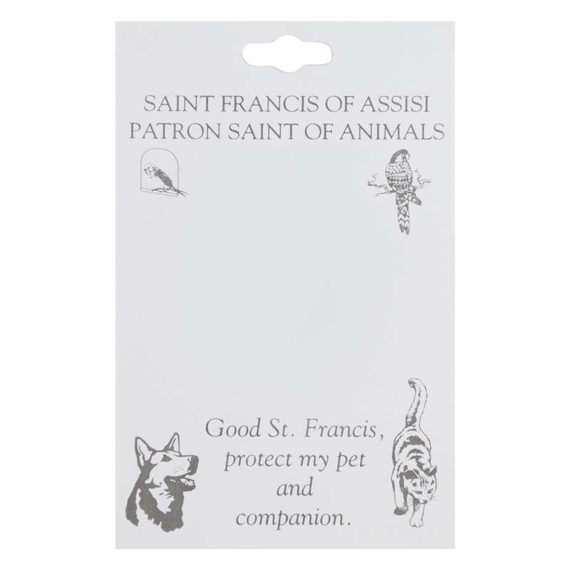 Singer Presentation Card. Your purchase includes a Singer Company St. Francis of Assisi, Patron Saint of Animals pet medal card (pet medal attached).