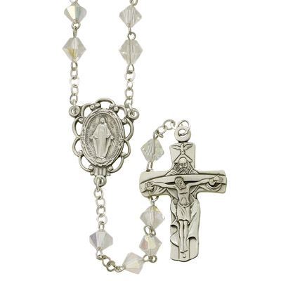 8mm Tin Cut Crystal Rosary Necklace with Sterling Silver Center and Crucifix