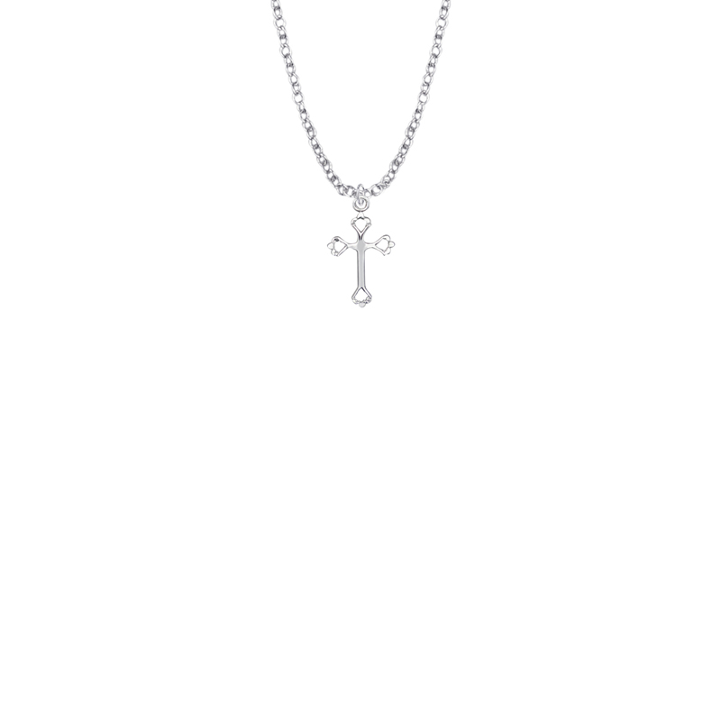5/8 Inch Sterling Silver Baby Open Heart Cross Necklace
